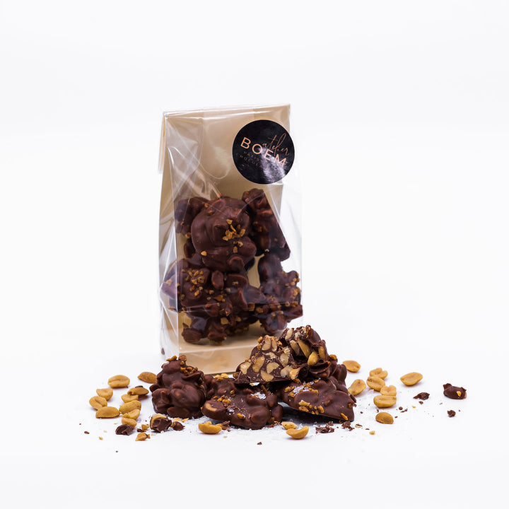 O combinație clasică de arahide coapte, ușor sărate, învelite într-o ciocolată cu lapte dulce.