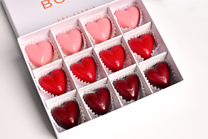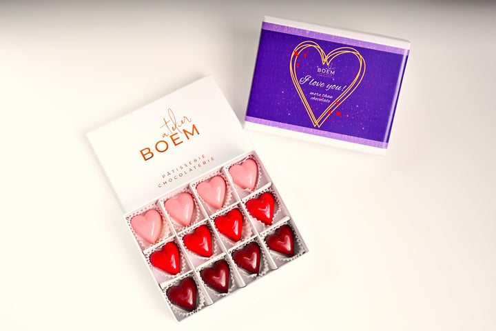 Cutie cu 12 praline inimă, cadoul ideal pentru persoana iubită.
