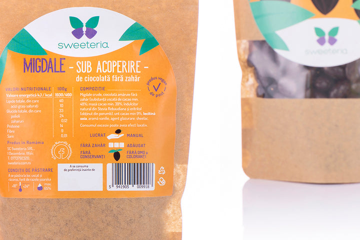 O explozie de bucurie în orice moment al zilei, când ai poftă de ceva dulce, cu indulcitor din Stevia, fara calorii. Prelungește-ți pauzele, gustarile și clipele de relaxare cu migdalele sub acoperire de ciocolată amaruie și bucură-te de gustul lor intens, dulce-natural. Migdalele drajate Sweeteria sunt acoperite cu un strat generos de ciocolată, FĂRĂ ZAHĂR ADĂUGAT.
