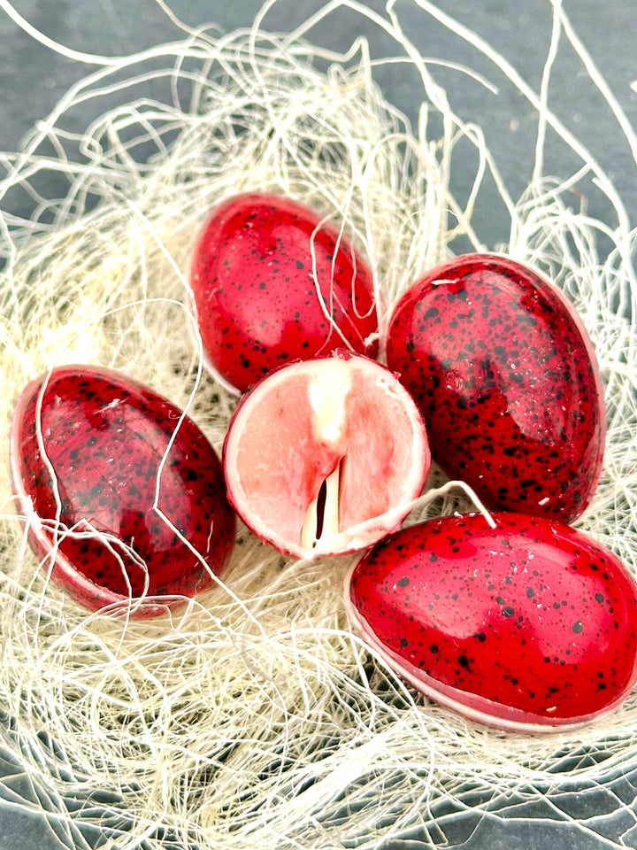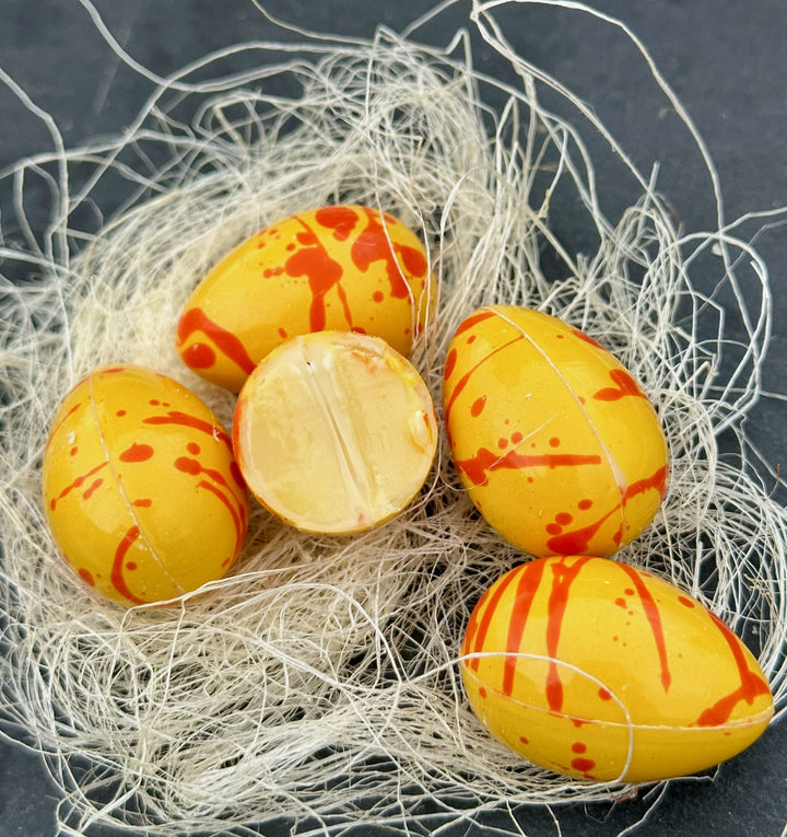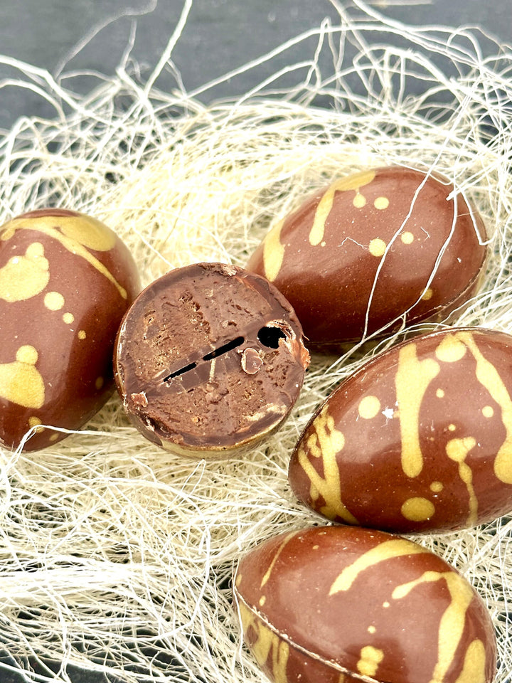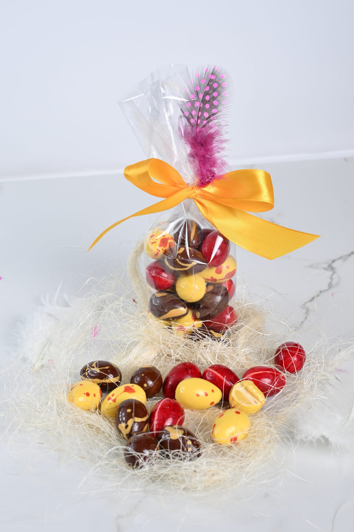 Cele 3 sortimente de oua in miniatura imbina savoarea ciocolatei cu gustul tropical de mango, zmeura, iaurt, alune de padure si caramel si reprezinta cadoul perfect pentru gurmanzi, de Paste.