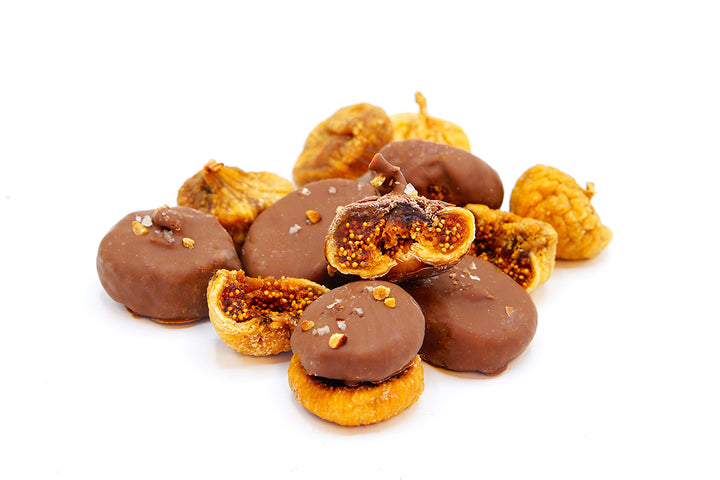 O formulă a fineții, prospețimii, sănătății, răsfățului si gurmanderiei: nu puteam să o rezumăm mai simplu și i-am spus smochine în ciocolată cu lapte. Ca să recapitulăm: avea de-a face cu smochine deshidratate, adică mai dulci în mod natural, cu o consistență masticabilă, care prelungește și mai mult plăcerea gustului. Și o complementaritate yin și yang: aveți la exterior coaja de ciocolată delicioasa cu lapte. Deci numai satisfacție!
