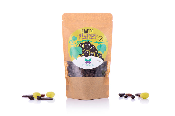 Cum arată plăcerea desăvârșită? Dulce, acrișor și amărui la un loc, totul sută la sută natural! Exact asta este ceea ce fac stafidele noastre, uzine energetice și depozite de antioxidanți, surse de dulce blând echilibrate de amărui de ciocolată fină, fără zahăr adăugat! Stafidele noastre sunt înveșmântate în ciocolată îndulcită cu numai cu Dulcișor, un produs 100% natural pe bază de Stevia Rebaudiana și eritritol din porumb nemodificat genetic. Numai bune pentru o zi lungă de post!