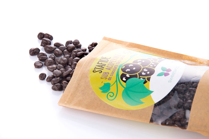 O explozie de bucurie în orice moment al zilei, când ai poftă de ceva dulce, cu indulcitor din Stevia, fara calorii. Prelungește-ți pauzele, gustarile și clipele de relaxare cu stafidele sub acoperire de ciocolată amaruie și bucură-te de gustul lor intens, dulce-natural. Stafidele drajate Sweeteria sunt acoperite cu un strat generos de ciocolată, FĂRĂ ZAHĂR ADĂUGAT.